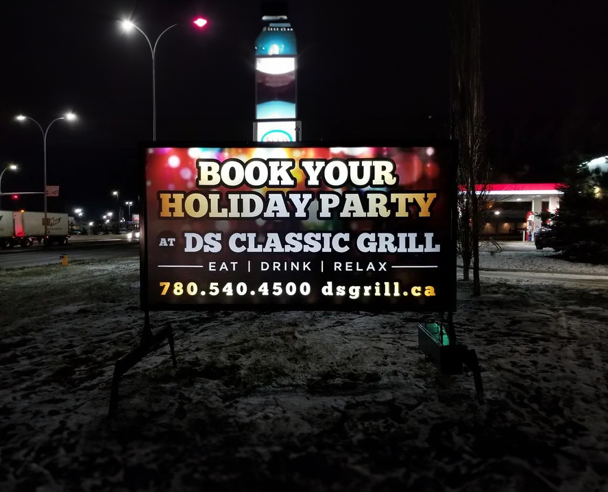 Edmonton boasts the inaugural internally illuminated mobile sign measuring 5×10 feet, featuring a vibrant full-color printed graphic. This type of signage is particularly advantageous in Edmonton, especially during the winter season when daylight hours diminish leading up to December 22, the shortest day of the year. Our signage offers the perfect blend of excellence, showcasing a top-notch image that remains visible for a remarkable 24 hours each day.